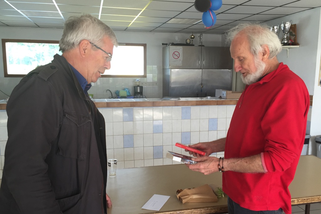 Son homologue pour l’Union Sportive Vinoise, Jean-Claude MARCHAND, lui a remis un petit présent ce dimanche à l’issue du dernier match de l’année au Vieux Melchior afin de le remercier de son dévouement pour les guêpes. Toujours au bord du terrain au plus près de l'action, il sera présent à Montélimar et probablement la saison prochaine...
