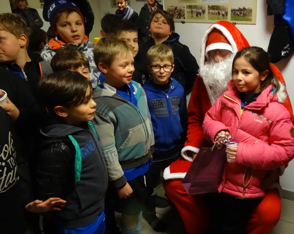 Vendredi soir a eu lieu au club house l’arbre de noël de l’école de rugby. Le bonhomme en rouge, était venu avec des cadeaux pour les petits rugbymans. Tous ont eu droit à un accessoire de saison, puisqu’ils sont repartis avec un bonnet noir siglé U.S.V. et de la guêpe. Les parents bien sûr étaient là, ils ont pu échanger autour d’un verre, pendant que certains enfants continuaient à parfaire leur plaquage…