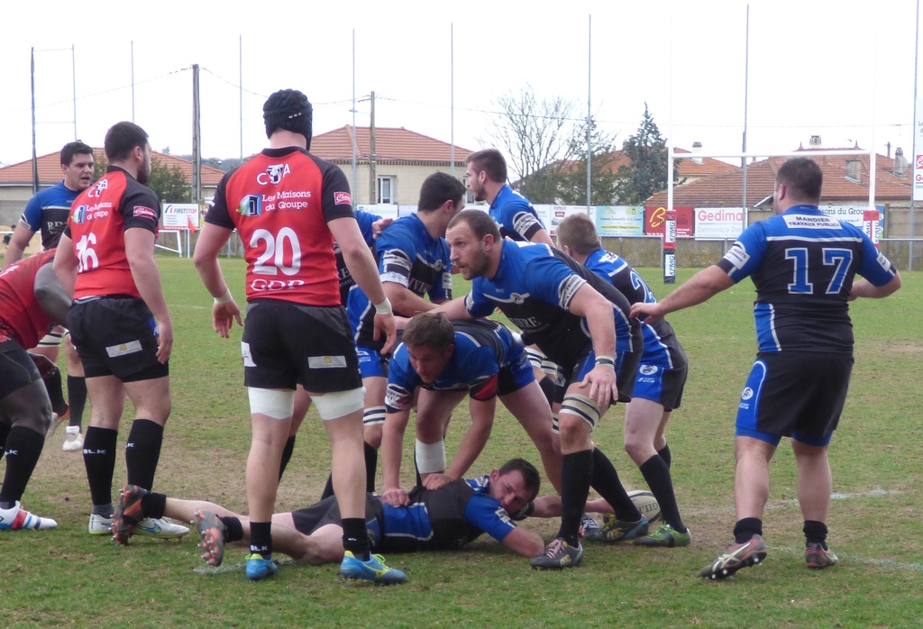Dès l’amorce de cette confrontation, Yann VILLARD répondait par un drop à la pénalité des locaux 3-3 (4ème). Un peu avant le quart d’heure de jeu, l’USV prenait même l’avantage grâce à un essai de Thomas GUICHARDON, bien servi par Jonathan DUFOUR 3-10. Avantage de courte durée, sur l’action du coup d’envoi les rouges concrétisaient une attaque de trois-quarts 10-10 (15ème). Le début de cette partie était fou, Vincent MAGALLON engageait par un long ballon dans les 22 adverses. La montée rapide de Vincent MICHALLET allait payer. Un contre à cinq mètres de la ligne, un rebond favorable et un essai opportuniste 10-15 (16ème). Trois minutes plus tard, après une belle série de plaquages manqués, les Vinois laissaient encore un trou béant dans la défense 17-15 (19ème). Après ce premier quart temps délirant, les choses se calmaient, les défenses prenant le pas sur les attaques. A l’approche de la pause, les bleus et noirs auraient aimé rentrer aux vestiaires avec seulement deux points de retard. Mais ils allaient craquer coup sur coup à la 36ème et 38ème minute 29-15. Malgré la réduction du score de Vincent MAGALLON 29-18, au repos le trou était fait. Le deuxième acte était moins spectaculaire. Seuls les buteurs allaient se distinguer. D’abord le Vinois à la 43ème et 55ème permettait de croire à un retour 29-24. Mais les Annonéens scellaient leur victoire par deux drops à la 59ème et 72ème 35-24. Au coup de sifflet final, Antonin ROZAND exprimait son mécontentement de voir le manque d’implication de ses joueurs, les mauvais choix et les trop nombreuses touches perdues.