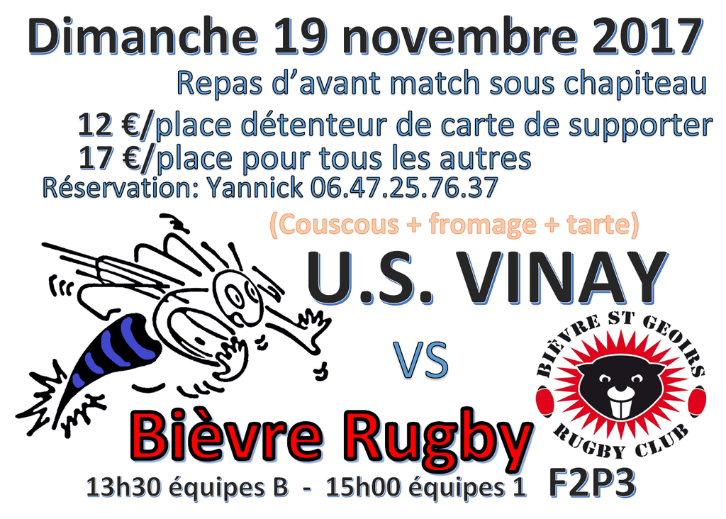 Il ne vous reste quelques jours (jusqu'à mercredi 15) pour vous inscrire au repas d'avant match du dimanche 19 novembre.