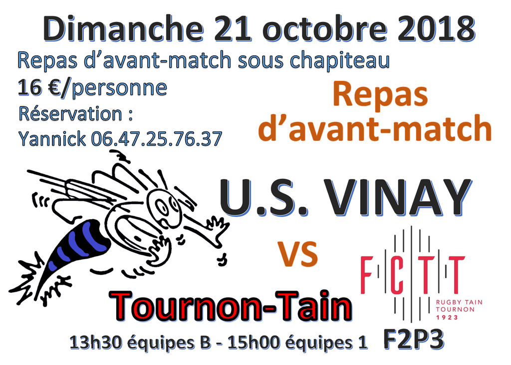 Un repas d'avant match est organisé dimanche 21 octobre. Faites vite, inscrivez-vous auprès de Yannick au 06.47.25.76.37